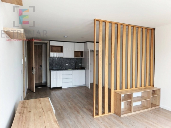 Ubicado en 4° piso exterior, sol de tarde, cuenta con 31 m2, un solo espacio, espacio de alcoba con mueble guarda ropa y closet, cocina con estufa eléctrica de 2 puestos y extractor, zona de lavandería y baño. Valor administración: $260.000